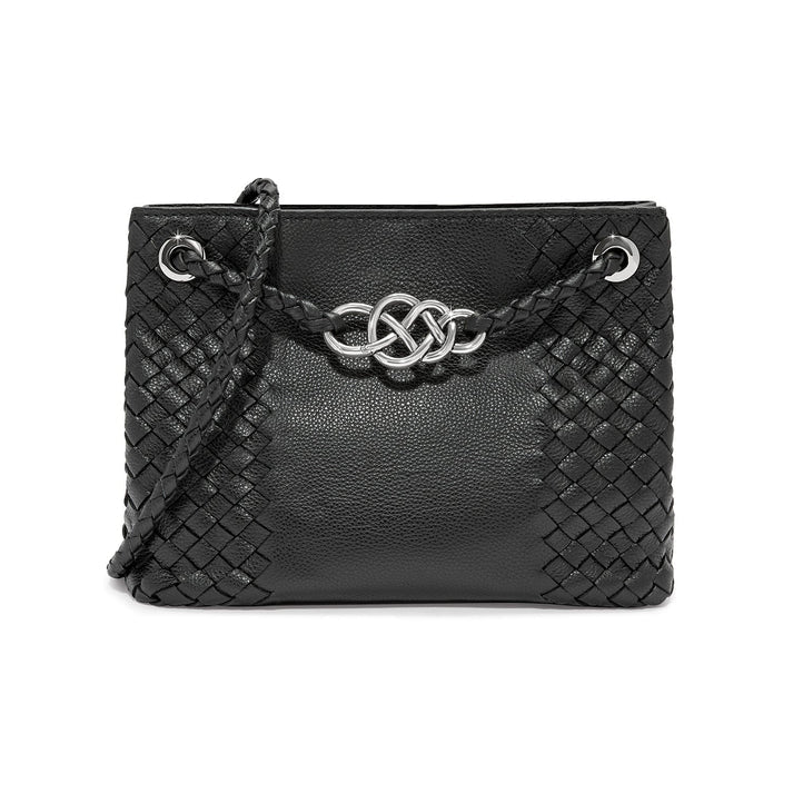 This convertible crossbody is meticulously engineered with a diagonal woven pattern on either side leaving the center with a smooth surface to showcase the modern Interlok hardware that drapes from a tubular woven strap that can easily be worn crossbody or doubled to be worn shoulder length. The interior is divided, giving you two roomy compartments.