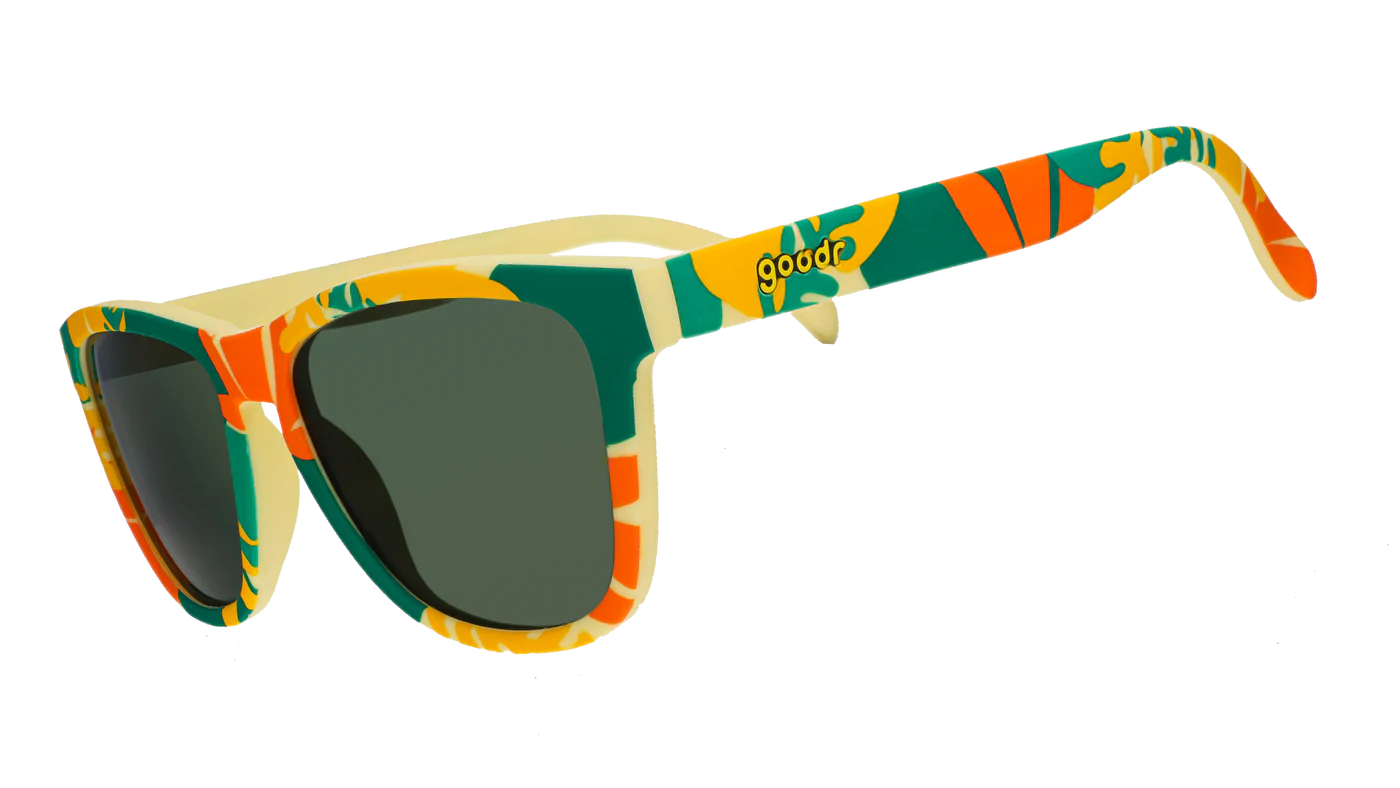 Pucker up, buttercup!!! These limited-edition sunny yellow OG frames with a tropical orange and green floral design and green non-reflective lenses will give you a stylish tropical sucker punch to the face.