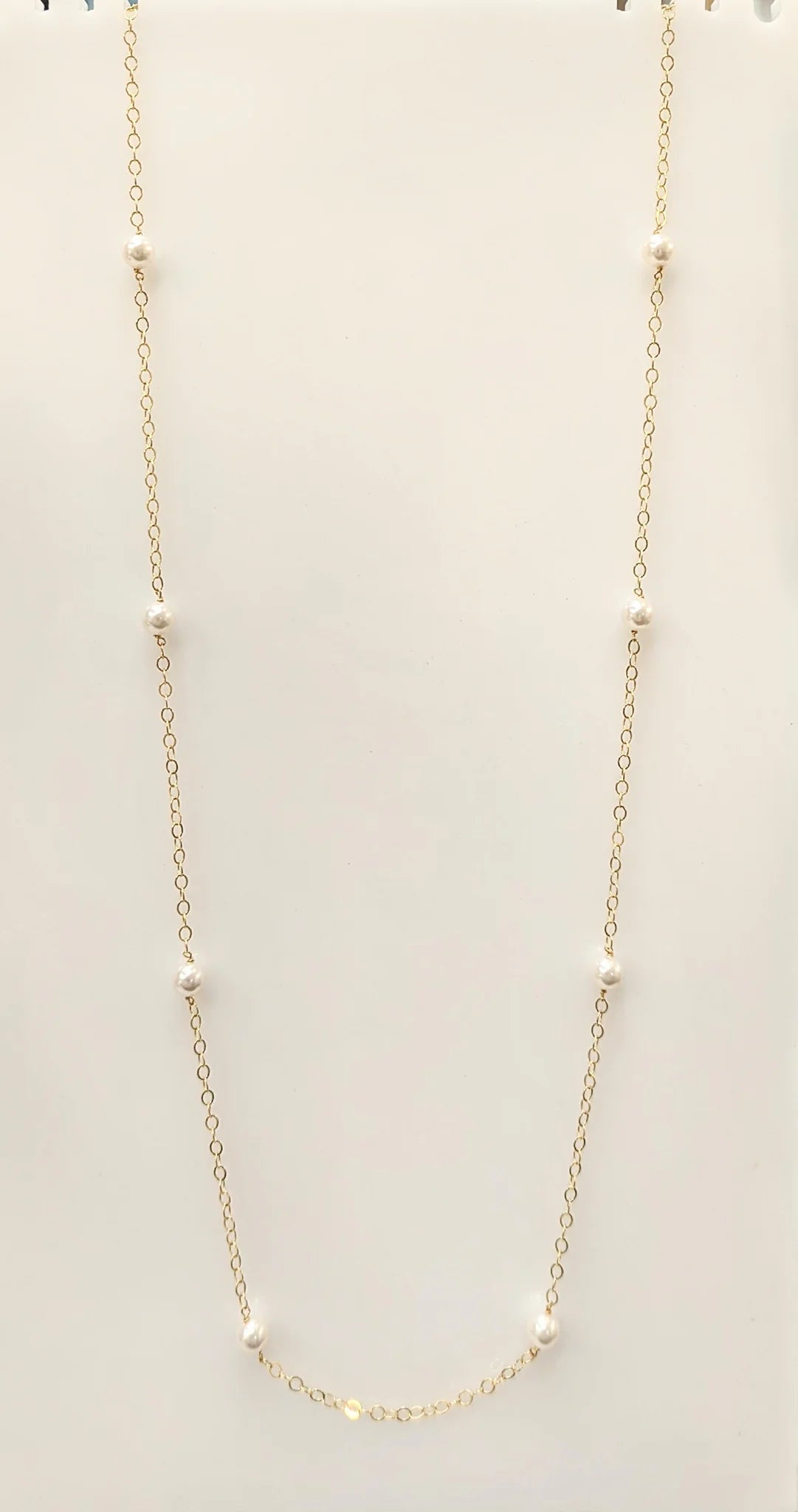 Made with a 14kt gold-filled chain and 8mm pearls.