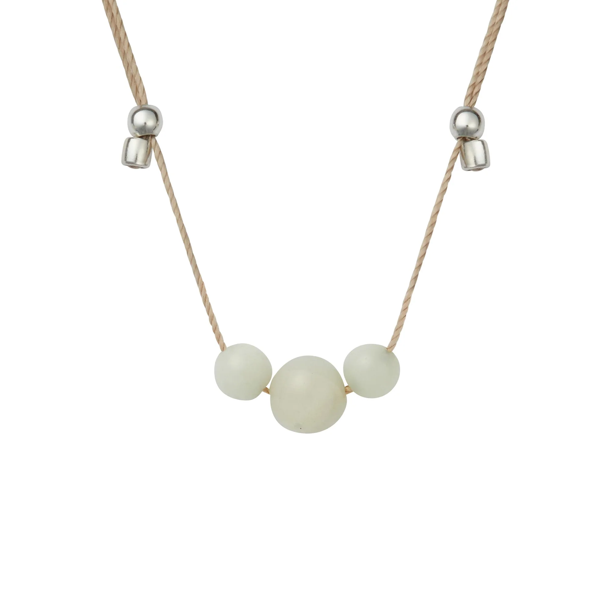 You adjust. Shouldn’t your necklace? This is, like, 20 necklaces in one. The silk cord goes from choker to 24" and every place in between thanks to our signature slider beads. Want it shorter? Hold the slider beads and gently pull them apart. Longer? Hold the silk strands and pull them outward. Always where you want it, even when you’re all over the place.