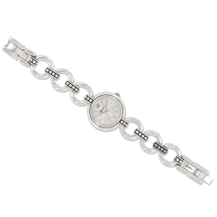 A matcher to the Pretty Tough Stud jewelry, this watch with round and studded links has a minimalistic silver dial. As with all Brighton watches, it has a Japanese movement – the world’s finest watch movement.