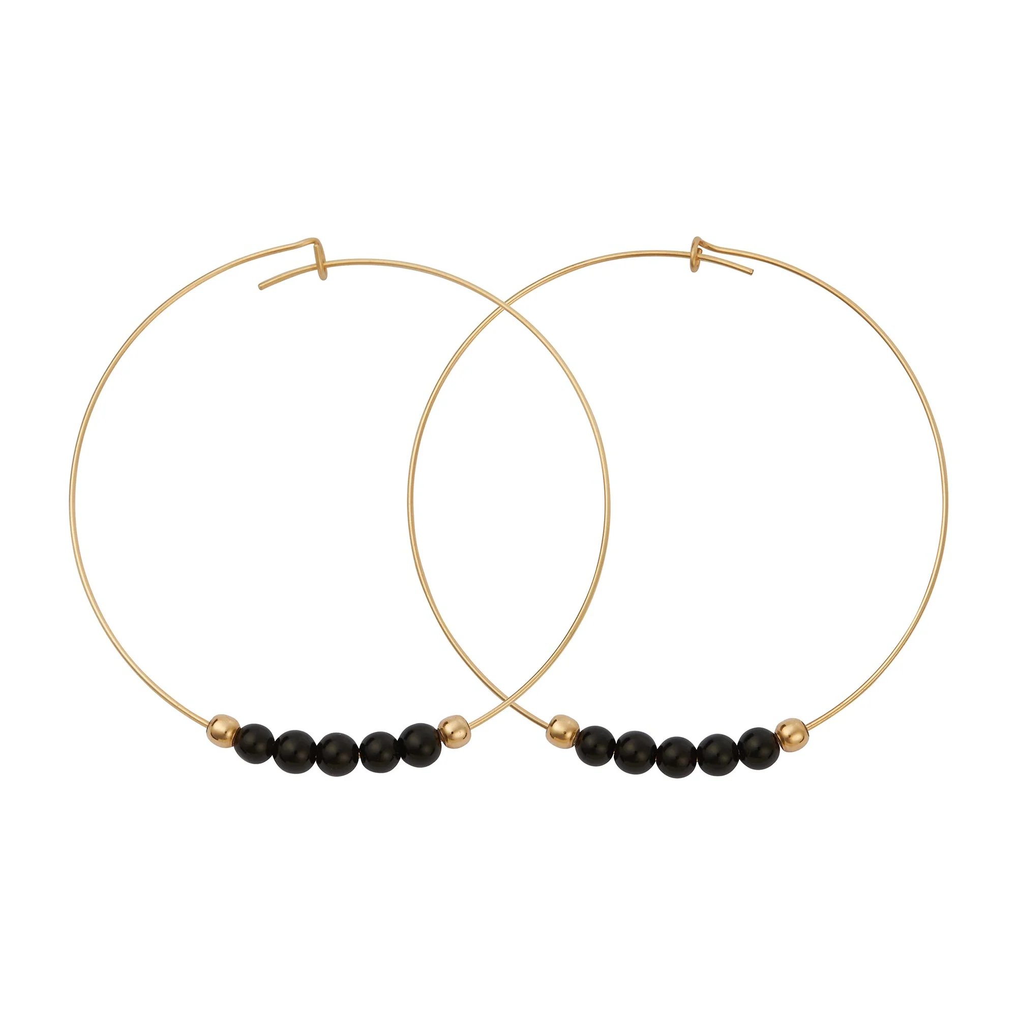 Black Onyx Gemstone 5 Stone Hoop Earring Gold