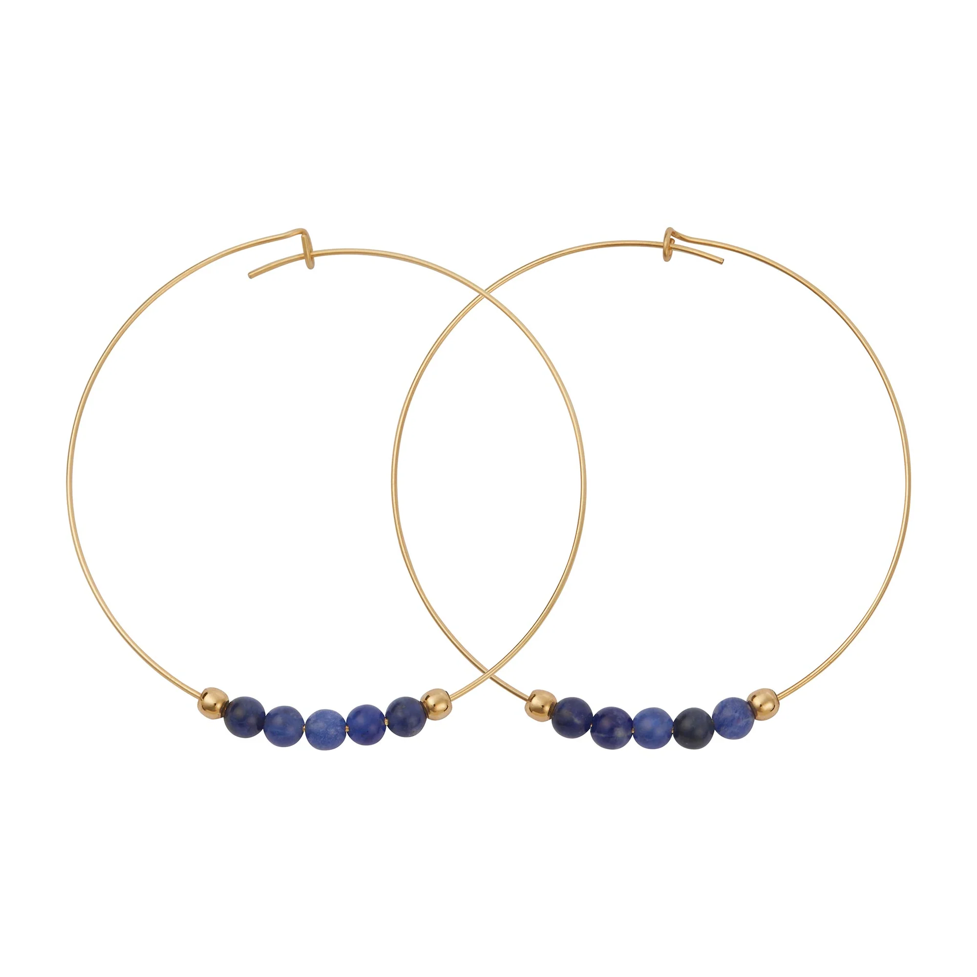 Blue Sodalite Gemstone 5 Stone Hoop Earring Gold