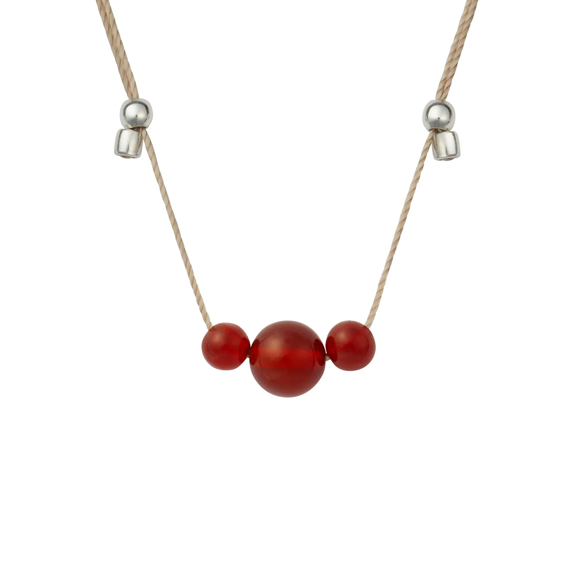 Carnelian 3 Gemstone Silk Slider Necklace Silver