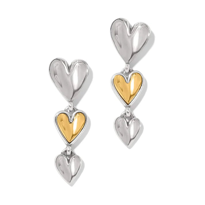 This trio heart earring with silver hearts framing golden ones is reminiscent of the cascading effect of water – a fluid and flattering accent to whatever you wear.