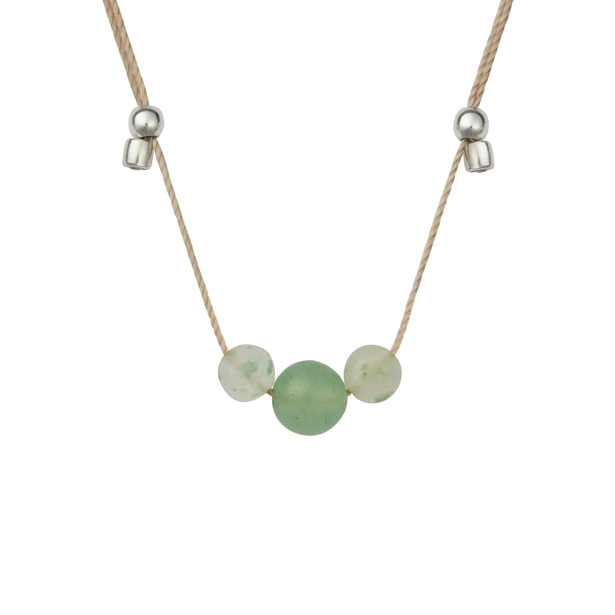 Green Aventurine 3 Gemstone Silk Slider Necklace Silver