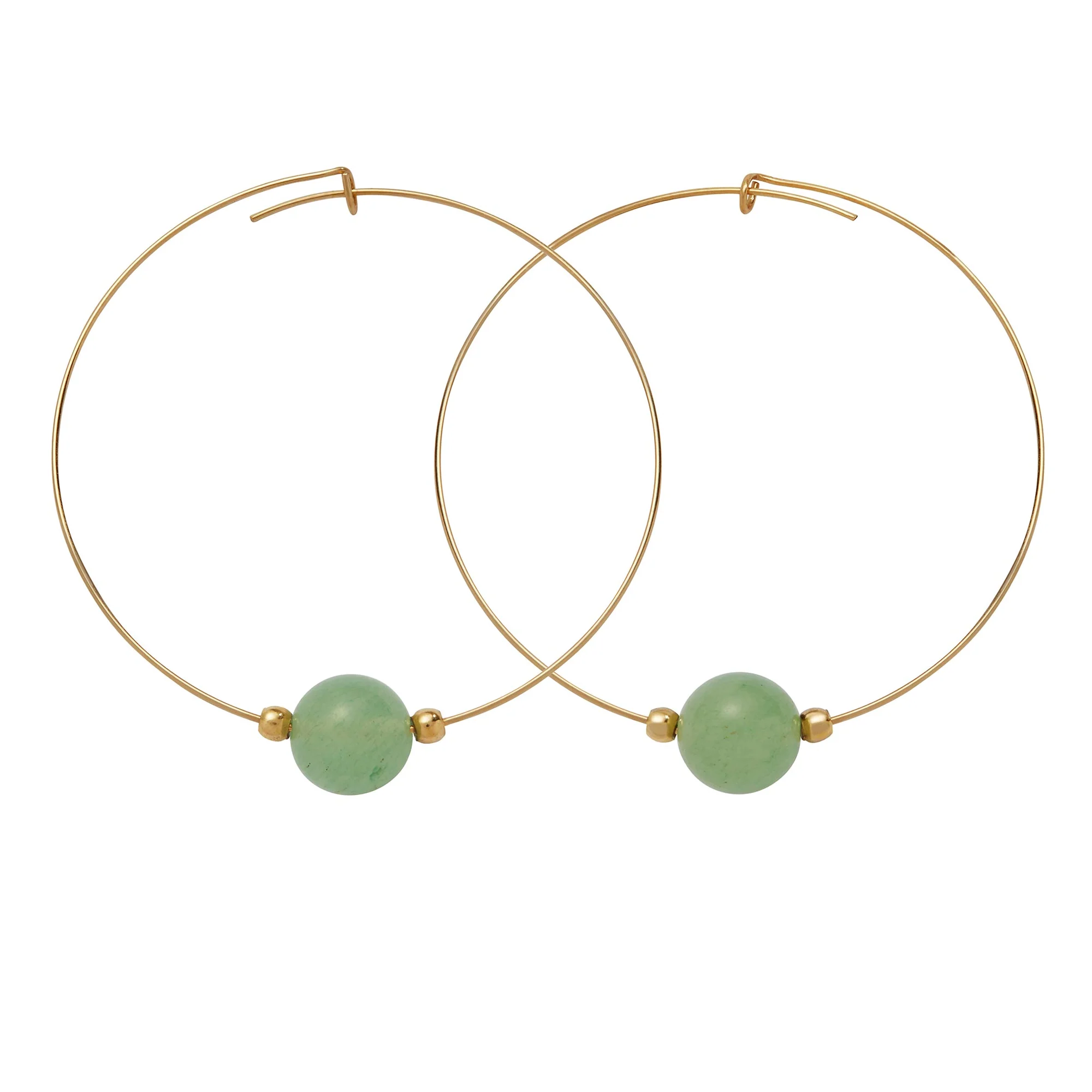 Green Aventurine Gemstone 10mm Stone Hoop Earring Gold