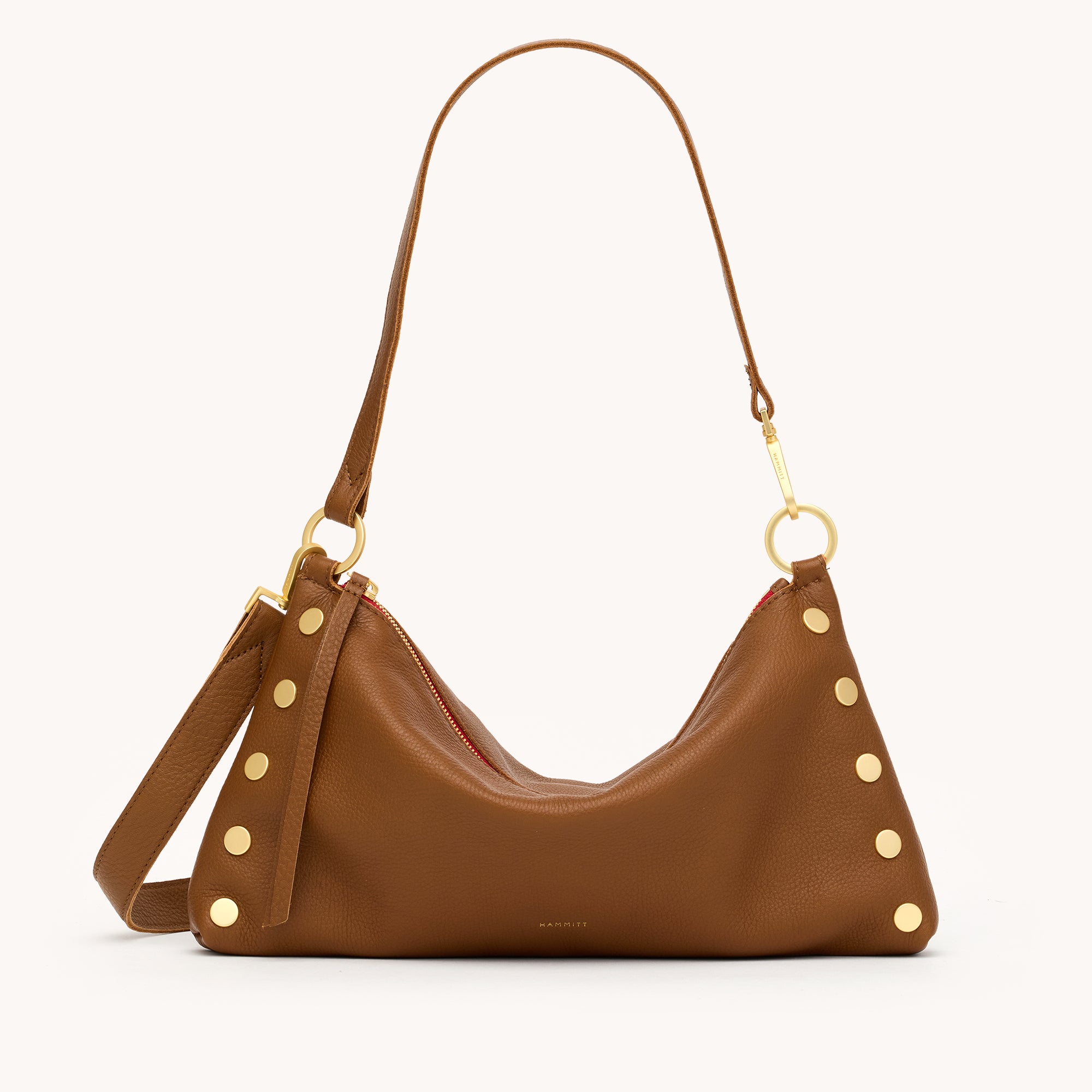 This fresh, of-the-moment bag is entering the chat as a must-have companion for nights on the town. Featuring a slouchy but current shape, this versatile little number transitions from a wristlet to a shoulder bag in seconds flat. The Kyle also includes a removable and adjustable crossbody strap, so you can go hands-free. A cousin of our best-selling mahogany suede collection, this leather features a soft pebbled texture with a hint of shine. Embrace the warm allure of this medium brown hue, enriched with a delicate yellow undertone that adds depth and sophistication to any ensemble.