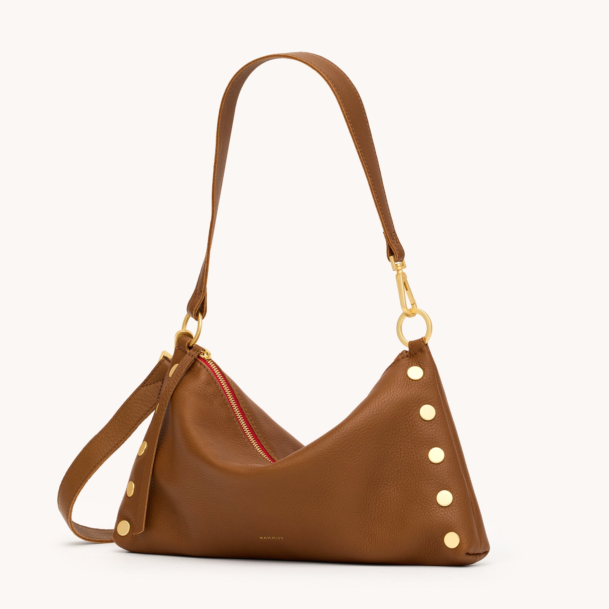 Our newest addition to the Kyle family is the Kyle Med. Featuring a slouchy but current shape, this versatile little number transitions from a wristlet to a shoulder bag in seconds flat. The Kyle also includes a removable and adjustable crossbody strap, so you can go hands-free. Embrace the warm allure of this medium brown hue, enriched with a delicate yellow undertone that adds depth and sophistication to any ensemble. The Kyle Med has the same easy to use features as our best seller - now offered in a large size!