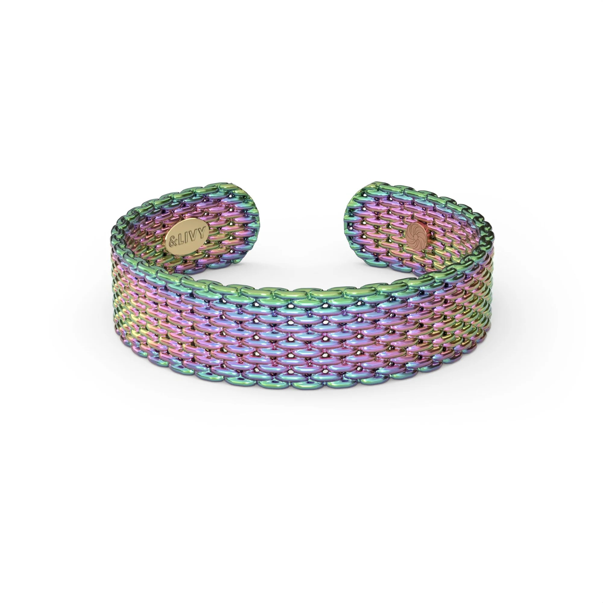 Charisma is a magnetic pull, where someone starts talking and it feels like even your goosebumps are leaning in to listen. Picture Rihanna smirking on the red carpet, but somehow a head to toe bedazzled mesh outfit is not even the most captivating thing about her. When you wear this Spectra flexible ring, it reminds you of your own unapologetic air that comes from being fully connected with yourself and whoever gets the pleasure of talking to you.