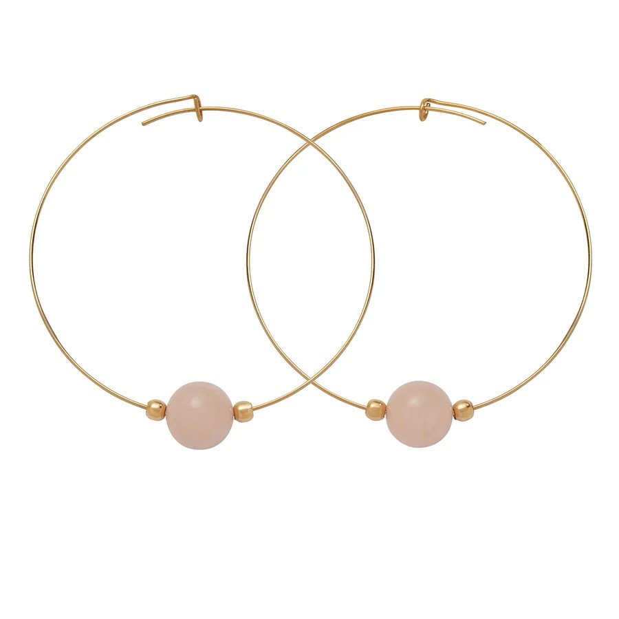 Rose Quartz Gemstone 10mm Stone Hoop Earring