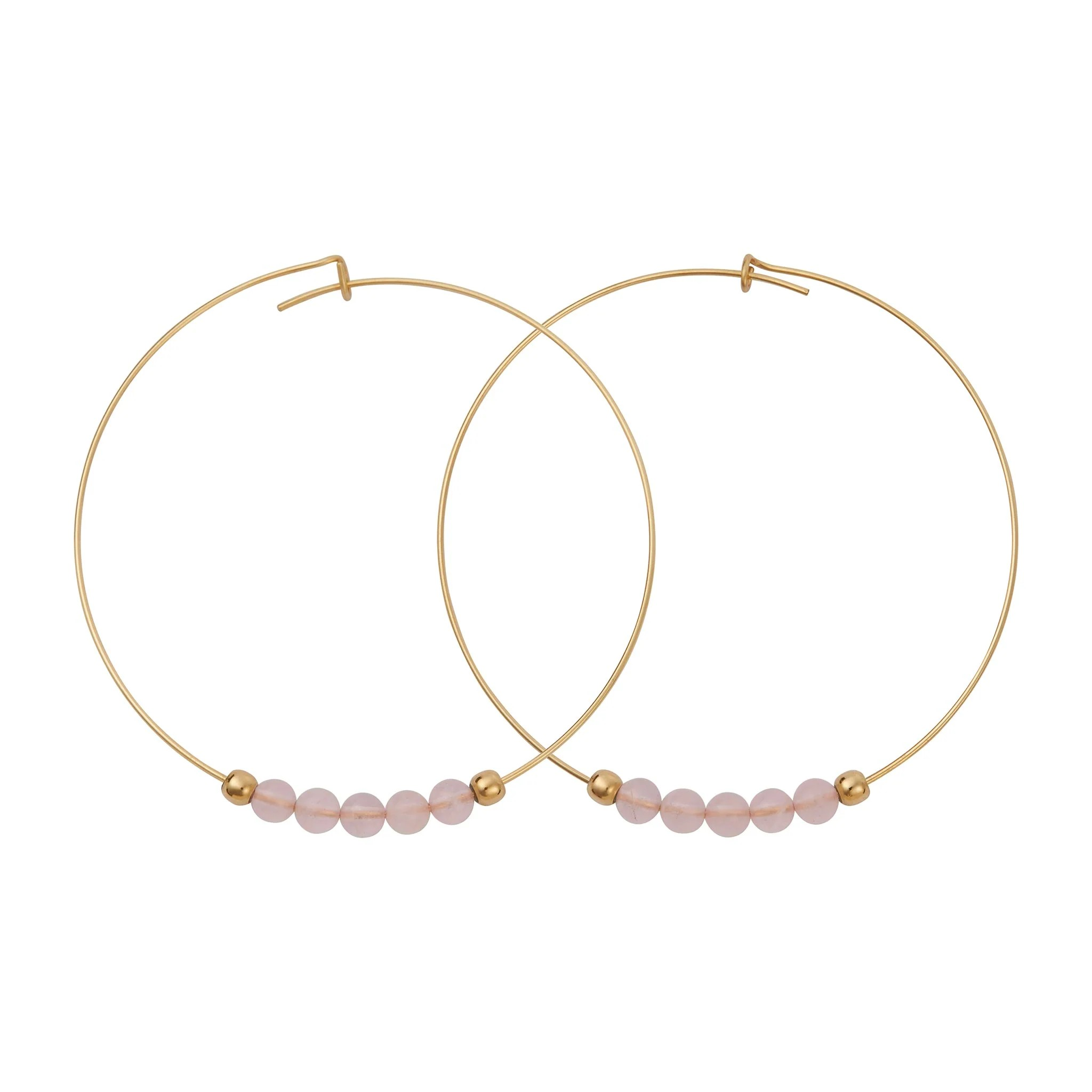 Rose Quartz Gemstone 5 Stone Hoop Earring