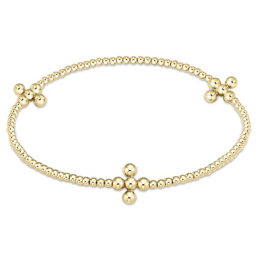 Signature Cross Gold Pattern 2mm Bead Bracelet - Classic Beaded Signature Cross Gold - 3mm Bead Gold