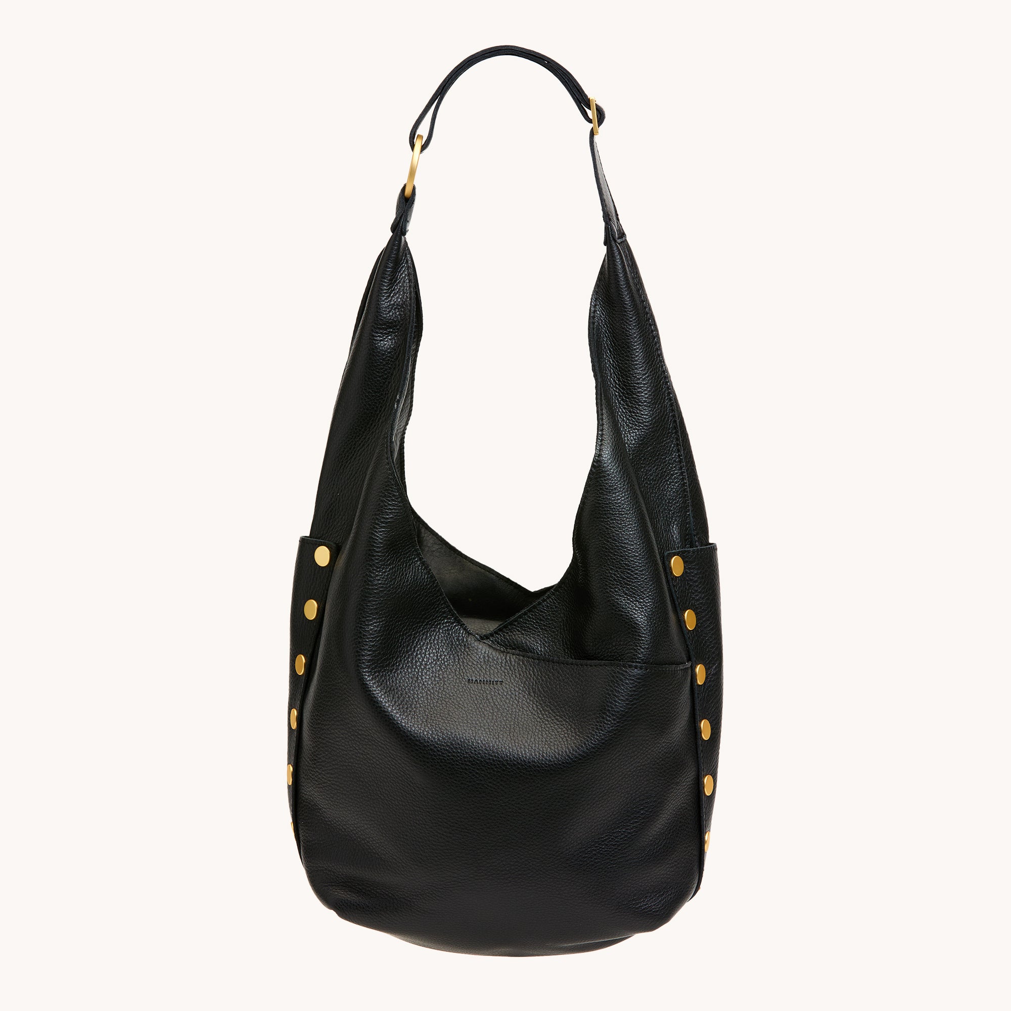 An updated version of everyone's favorite hobo bag has entered the chat. With a zippered main compartment and adjustable strap, this shoulder bag still resembles the original, with pockets galore and a slouchy nature, making it extra roomy and the ultimate catch all bag. Featuring the Hammitt signature combo of black leather, brushed gold hardware and a red zipper pull.