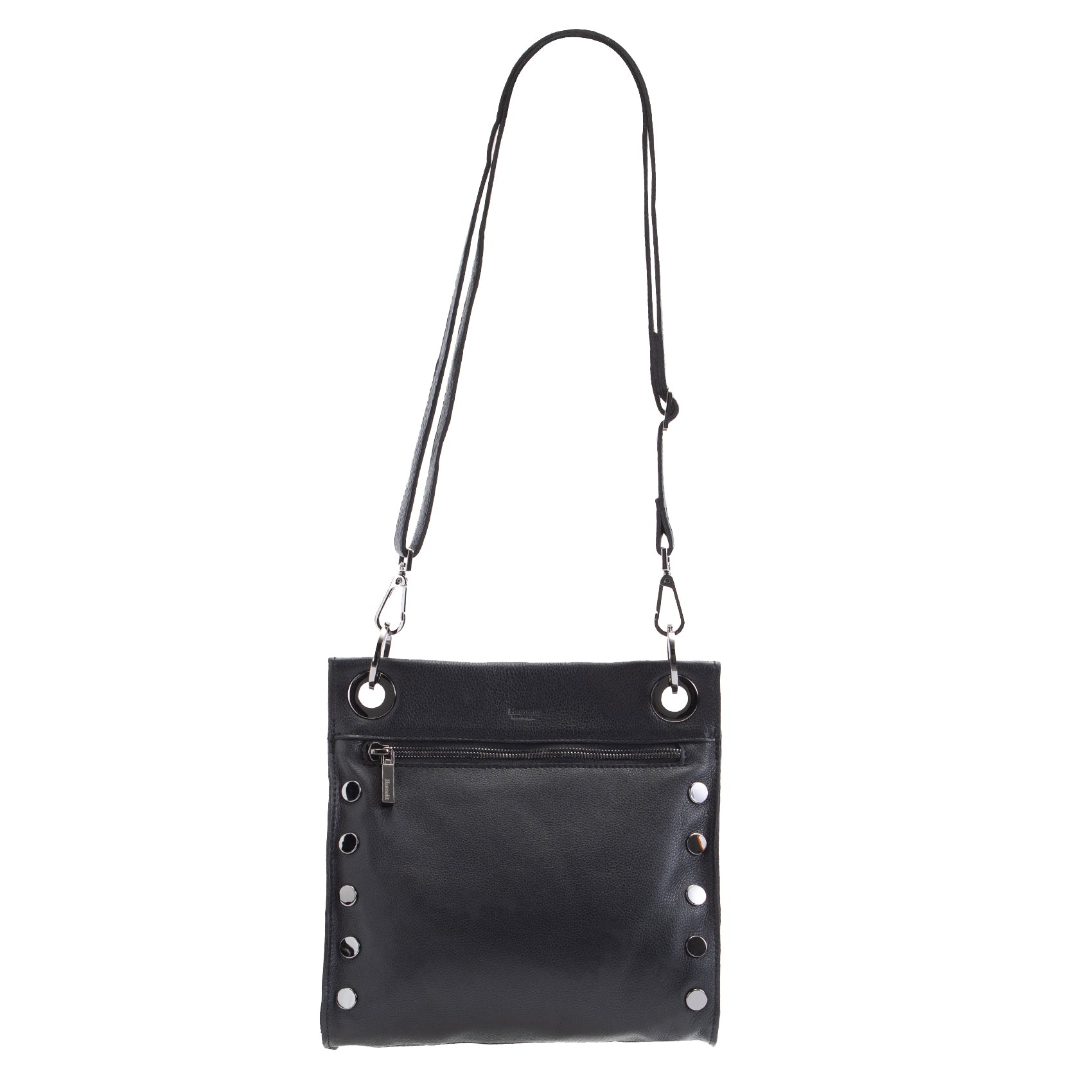 This Tony believes that bigger is better. This larger version of our fan favorite crossbody bag has a dedicated external cell phone pocket, large zippered interior compartment, embossed red twill lining, credit card slot and adjustable cross body strap. With this Tony on your arm nothing can stop you. Crafted with our classic black pebble leather.